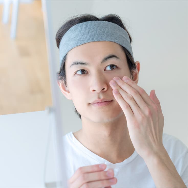 特に洗顔後、入浴後、髭剃り後はお顔全体にたっぷりなじませ、乾燥が気になる部分へは重ねづけをおすすめします。
